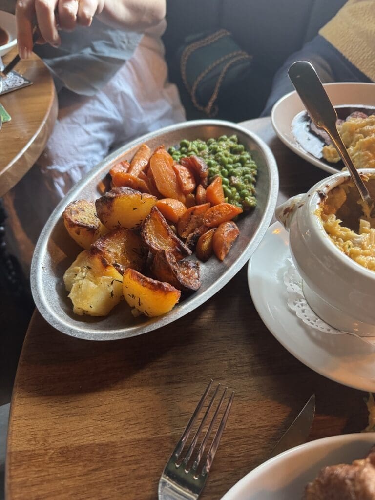Moving onto the trimmings also world class. Yorkshire nice and light, roasties on the crunchy side just how I like them. The peas (I know who cares about peas!) were stunning, cooked it in pancetta and were slightly smashed but were a great side.